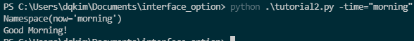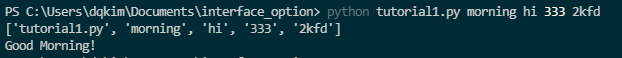 위의 command line을 살펴보면 python을 통해 실행시키는 코드 외에 실행할 파이썬 파일 경로를 지정하는 tutorial.py 외에도 그 뒤에 공백을 두고 입력한 값들이 sys.argv로 입력된 것을 확인할 수 있다.