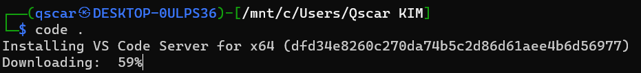 이후엔 wsl 터미널에서 code를 입력하는 것으로 Visual Studio Code를 실행시킬 수 있으며, 해당 WSL 환경과 연동하기 위해 VSCode의 extension 중 wsl을 설치해준다.