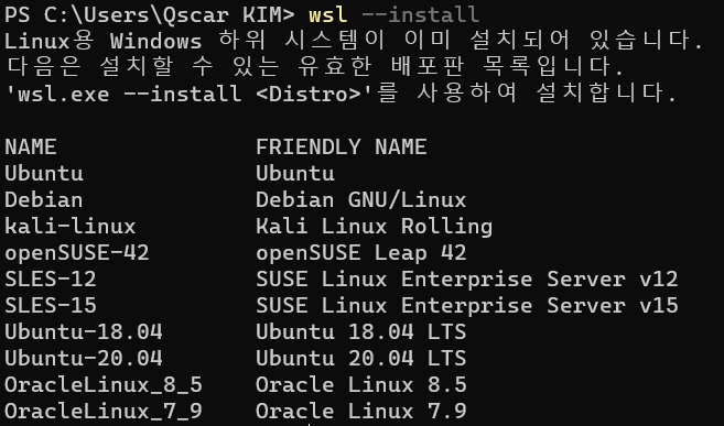 우선 사전에 WSL 혹은 WSL2를 설치한 환경이어야 한다.